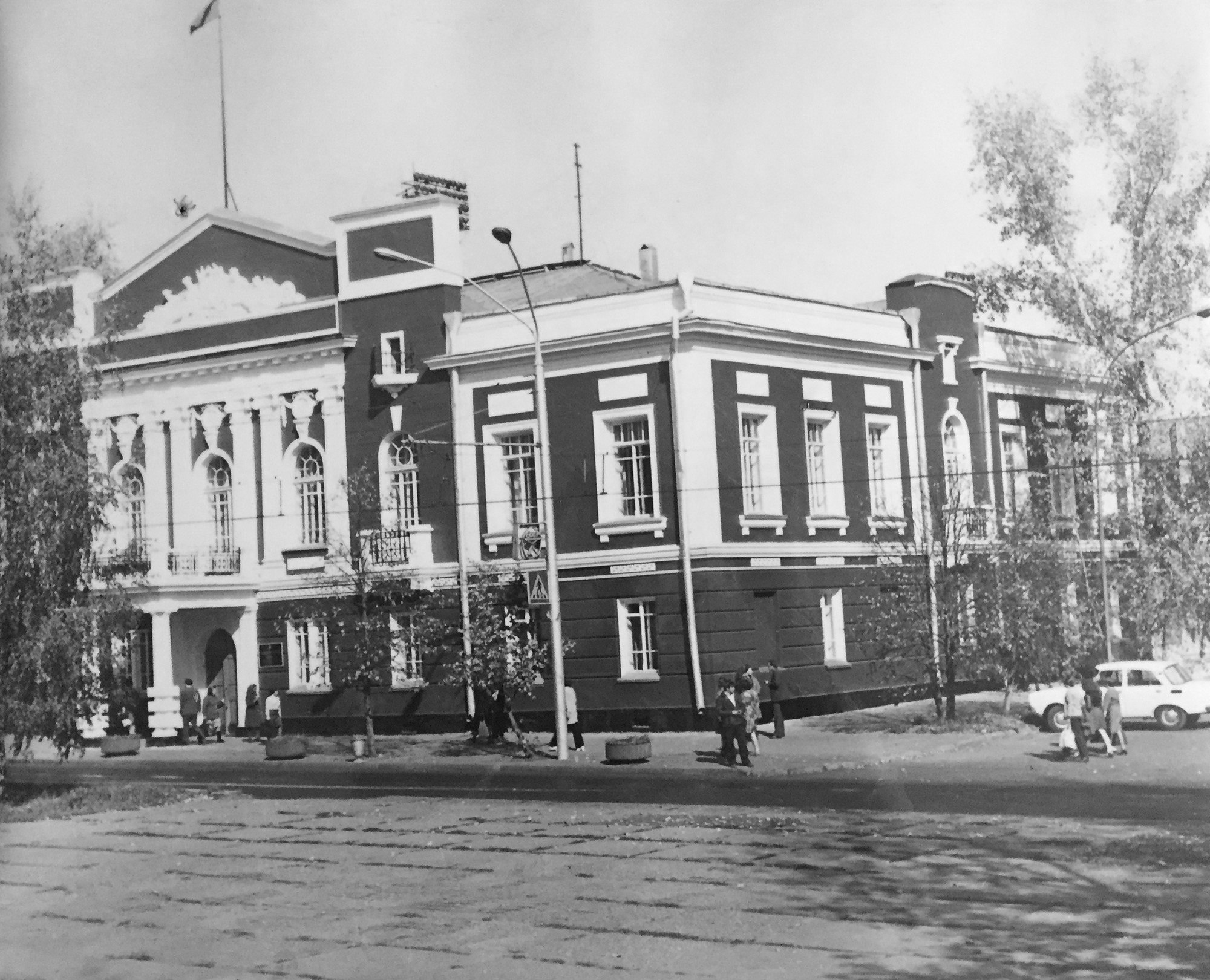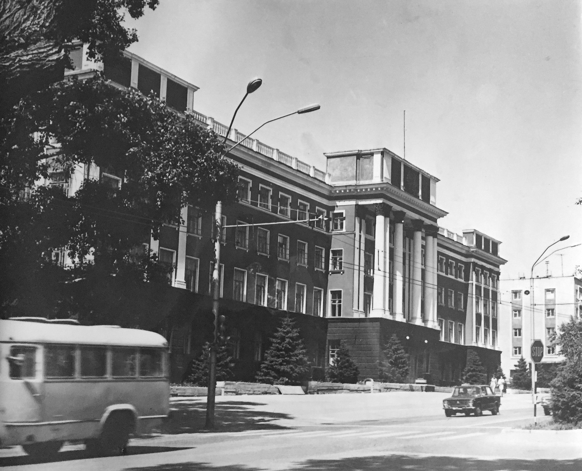 Продолжаем перелистывать страницы импровизированного фотоальбома. Перед вами нынешнее здание краевого суда, а изначально оно строилось как Управление краевого комитета КПСС. Жаль, что снимки чёрно-белые. Но даже так ощущается солнечное типло и чистое голубое небо. Безоблачное небо конца 70-х - начала 80-х годов прошлого века.