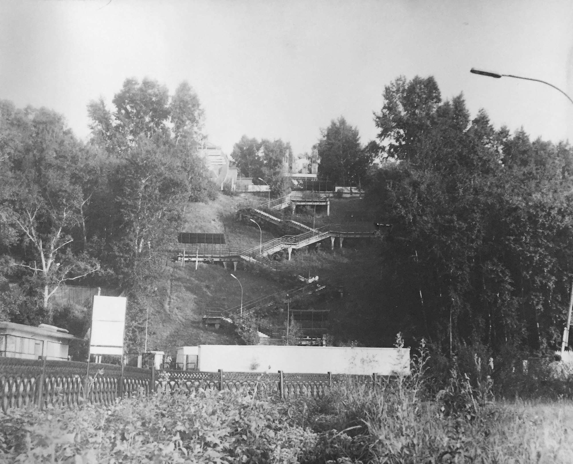 А здесь ещё востребованная и ухоженная "Казариновская" лестница алтайской краевой ВДНХ. Город лишился этого уникального сооружения осенью 2015 года, а взамен получил откровенную безвкусицу. Свои мысли по этому поводу я неоднократно высказывал в различных постах и публикациях, но не могу не повториться. Очень жаль прежнюю лестницу.